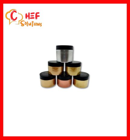 Vibgyor Luminous Gold Edible dust, which is a food coloring product used for confectionery and baking. It is a high-quality, edible