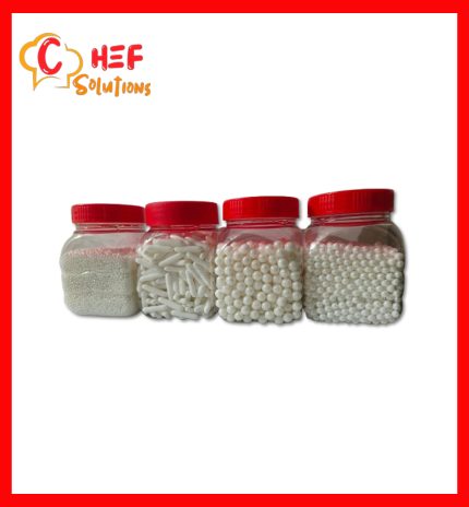 Appearance:Â Bright white, glossy, and smooth spherical shape designed to resemble real pearls. Texture:Â Generally hard and crunchy when made of sugar,