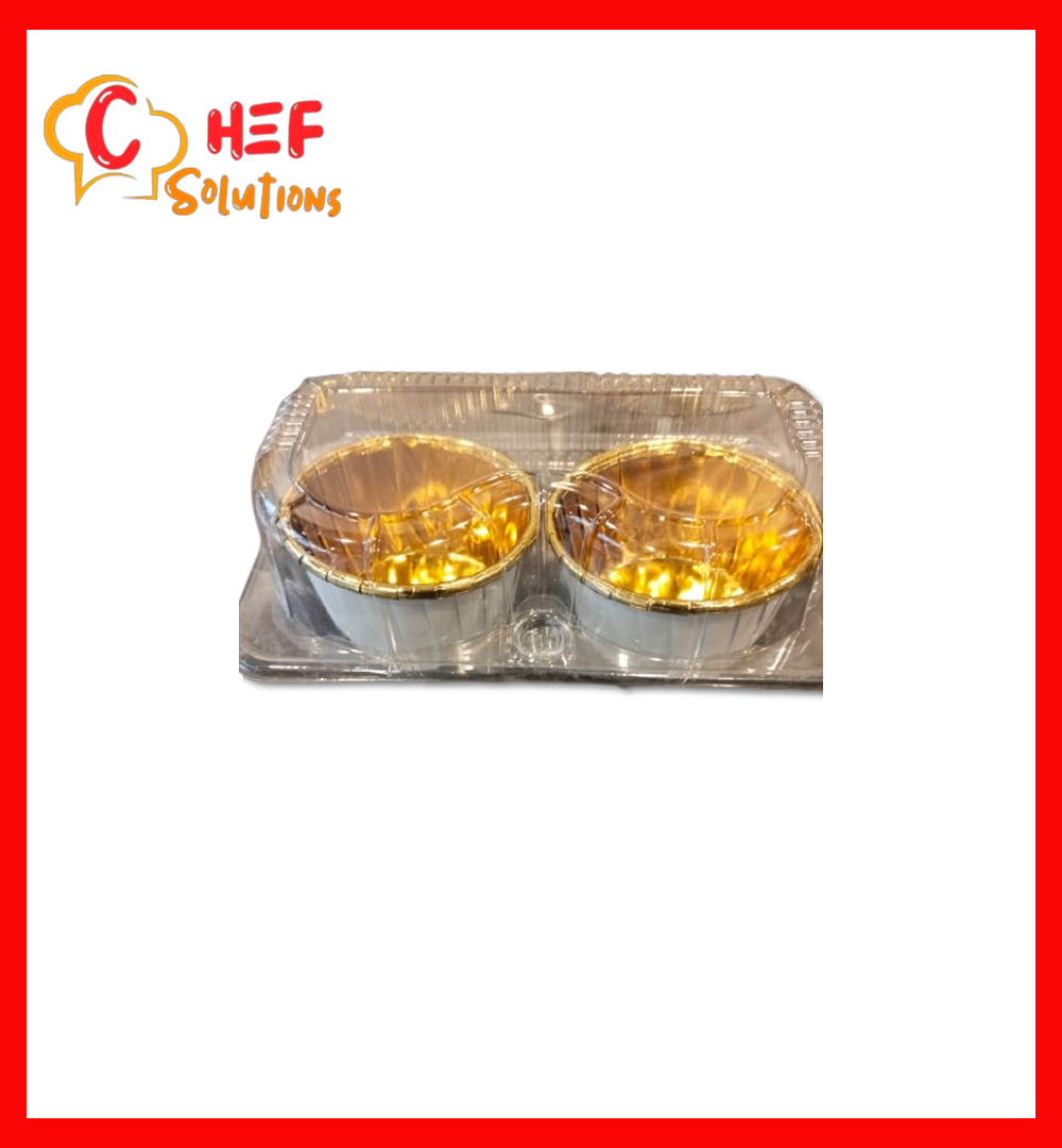 These are disposable  aluminum foil baking cups with clear plastic lids, suitable for baking and serving desserts like cupcakes or muffins.