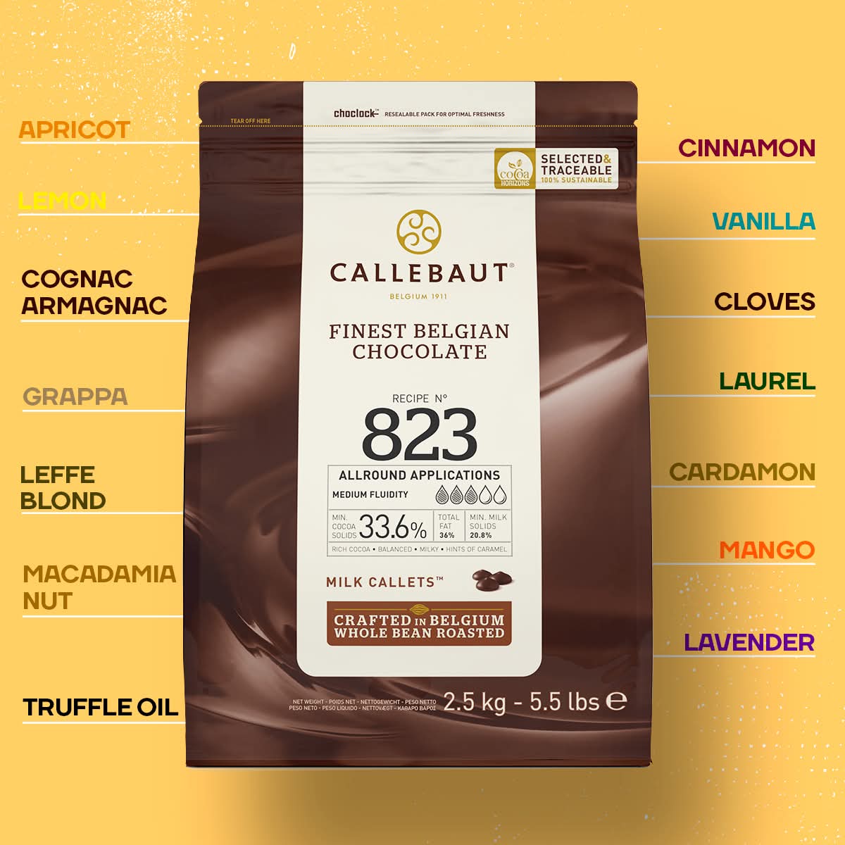 Callebaut Recipe No. 823 Finest Belgian Milk Chocolate With 33.6% Cacao, 20.8% Milk